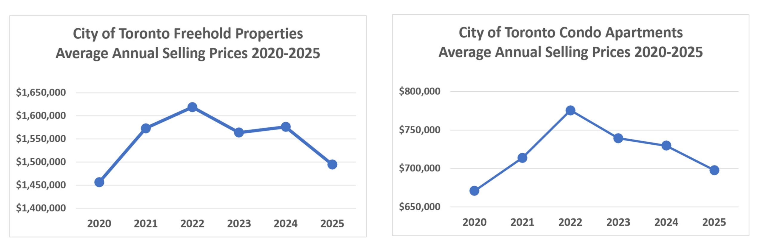 City of Toronto house prices continued the downward trend that began in October, ending 2025 at their lowest point—11% below September levels and 14% below the spring peak. Despite this decline, bidding wars have persisted over the past three months for homes that “check all the boxes,” highlighting strong underlying demand from qualified buyers ready to act when they find the right house. Many buyers, however, remain on the sidelines awaiting clearer signs of a market turnaround. If the market has indeed reached the bottom of the post-bubble adjustment, this could set the stage for a relatively strong spring market in 2026.