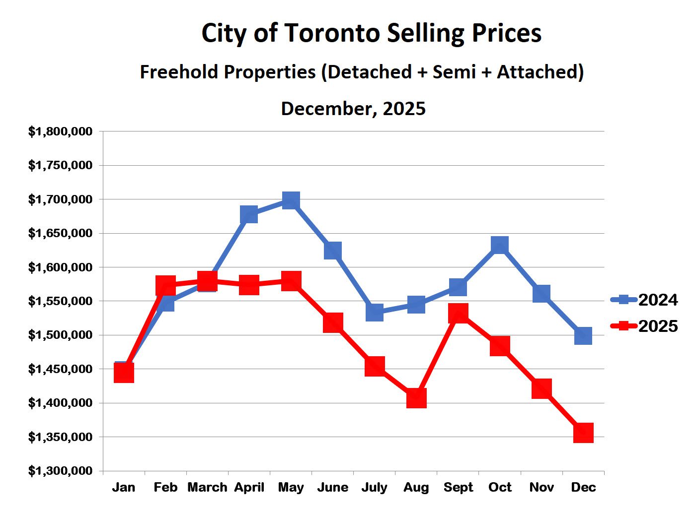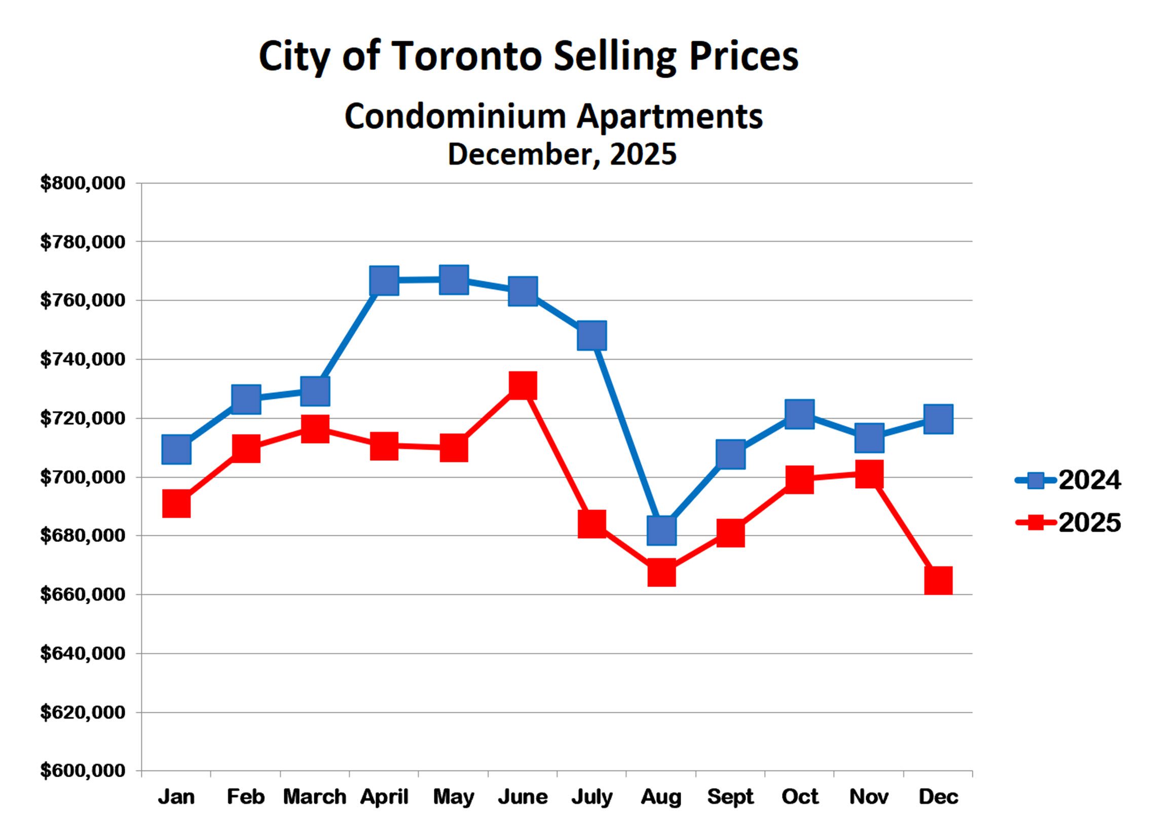 Condo prices in the City of Toronto have followed a different pattern than houses over the past three months. While both rose in September, condo prices continued to climb in October and November before dropping sharply in December. As a result, condos—like houses—ended 2025 at their lowest point of the year. The condo market has been hit hard since COVID. Lockdowns triggered a move to surrounding communities, higher interest rates led many investors to sell rental units, and a wave of new condo completions added further supply. Together, these forces pushed inventory higher and prices lower. With these pressures now easing, the market appears well positioned for a gradual recovery.
