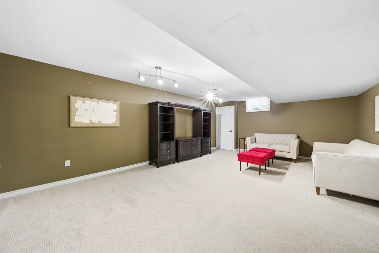 A convenient laundry room rounds out this level. The walk-out basement adds even more living space with a large rec room, home theatre setup, a dedicated gym, a guest bedroom, a sleek 3-piece bath, and plenty of storage.