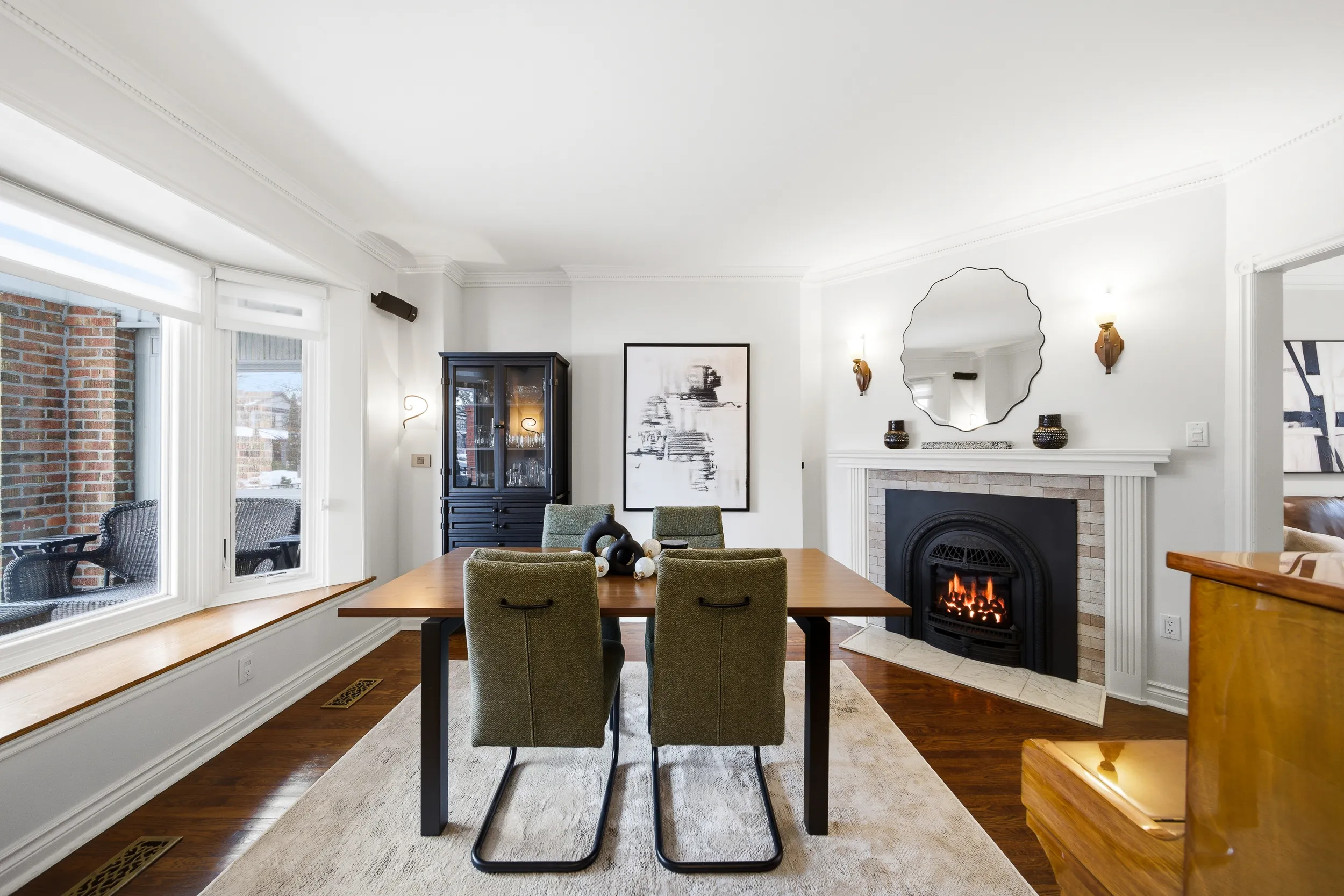 The spacious living room is perfect for gathering and relaxing, while the large dining room is designed for hosting, complete with a charming gas fireplace and a bay window overlooking the front yard.