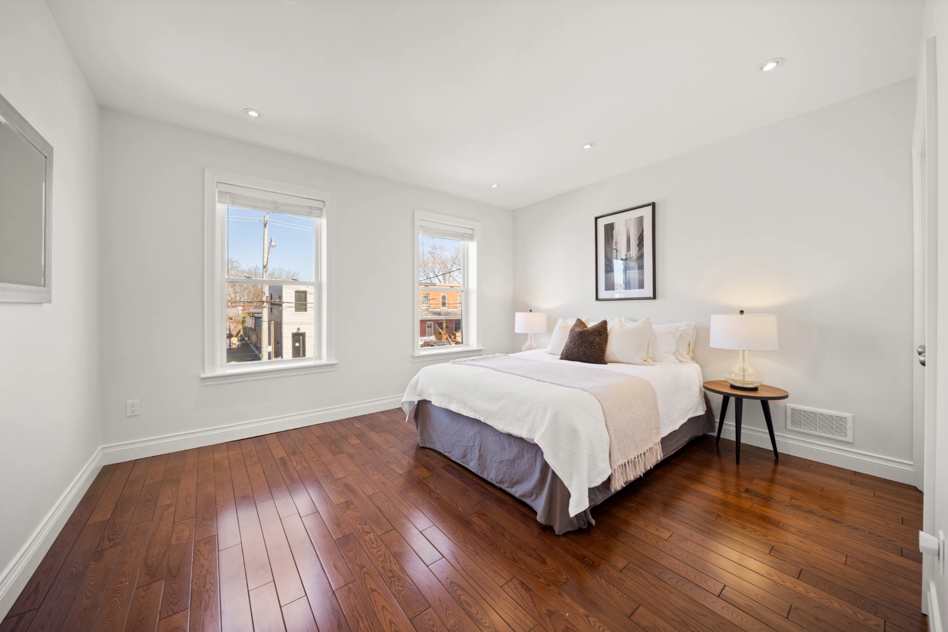 The double garage at the back allows for private parking off the laneway, and the property qualifies for a laneway suite up to 856 sq ft. On the 2nd floor there are 3 generous bedrooms, each with closets, a 3 piece bathroom with glass shower doors, pot lighting and hardwood floors.