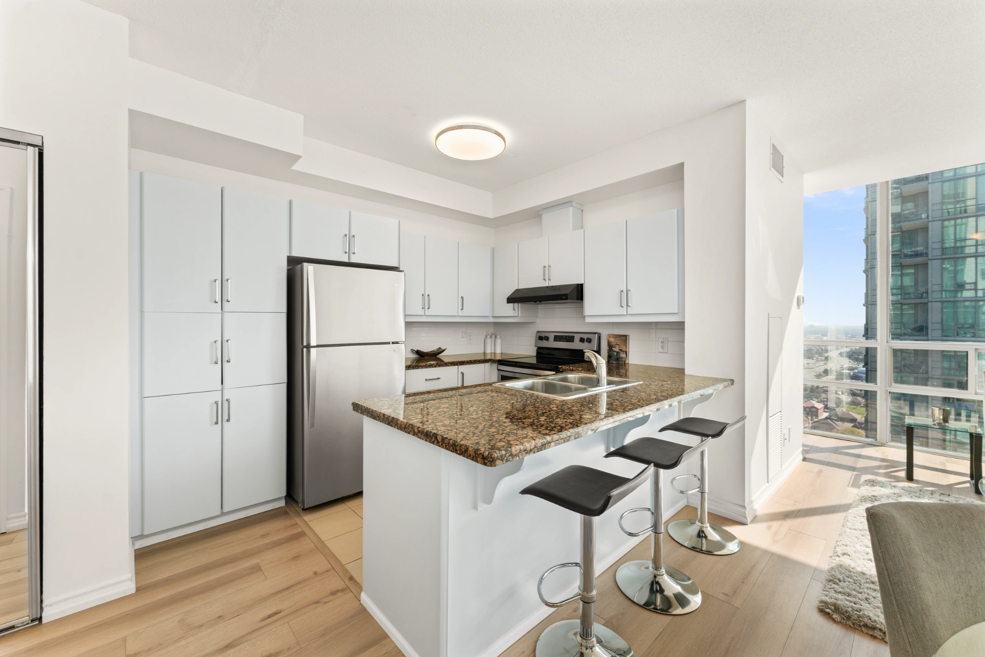 It’s a great location, an easy walk away from Square One, Elm Drive and Fairview public schools, and Kariya park. You can also walk to the Cooksville GO station, MiWay transit stops and the upcoming Hazel McCallion LRT on Hurontario. City Hall, Celebration Square, and the Mississauga Valley Community Centre are also close by and there is easy access to major highways and Pearson airport.