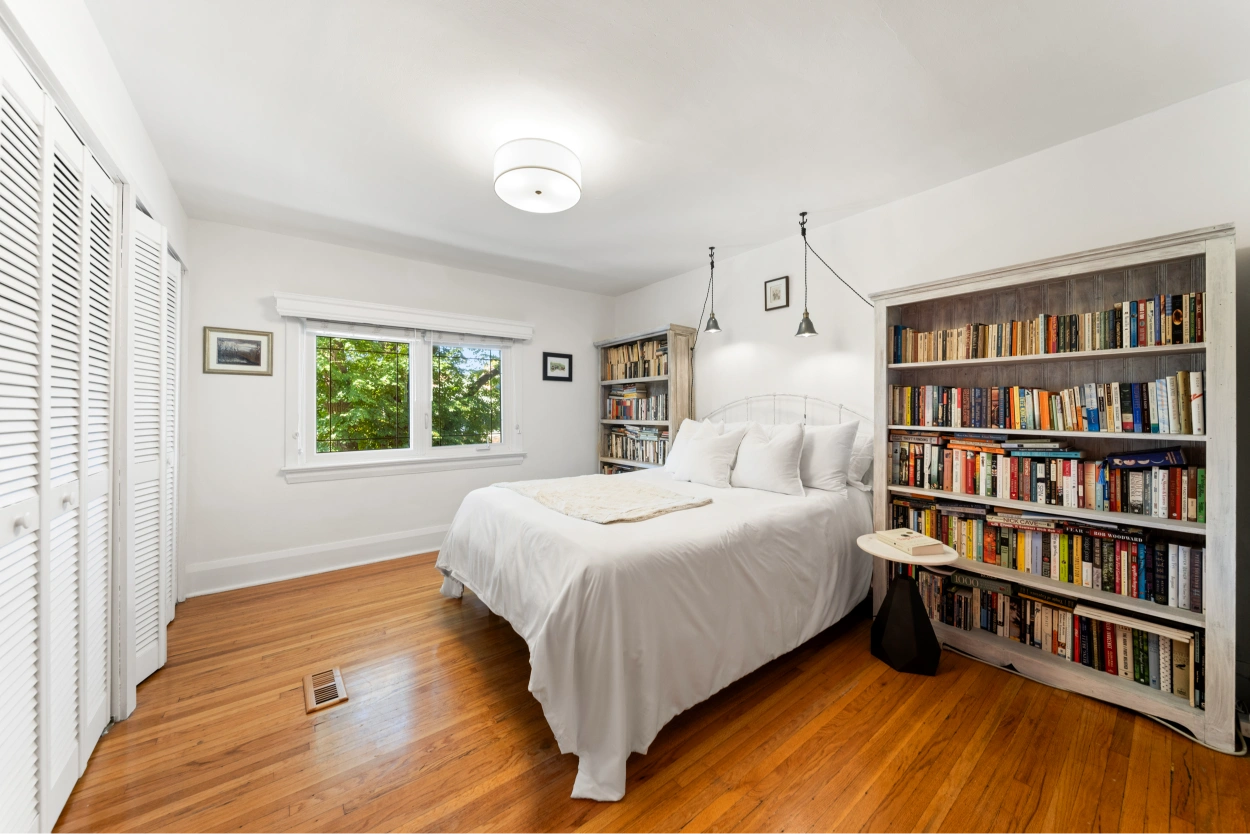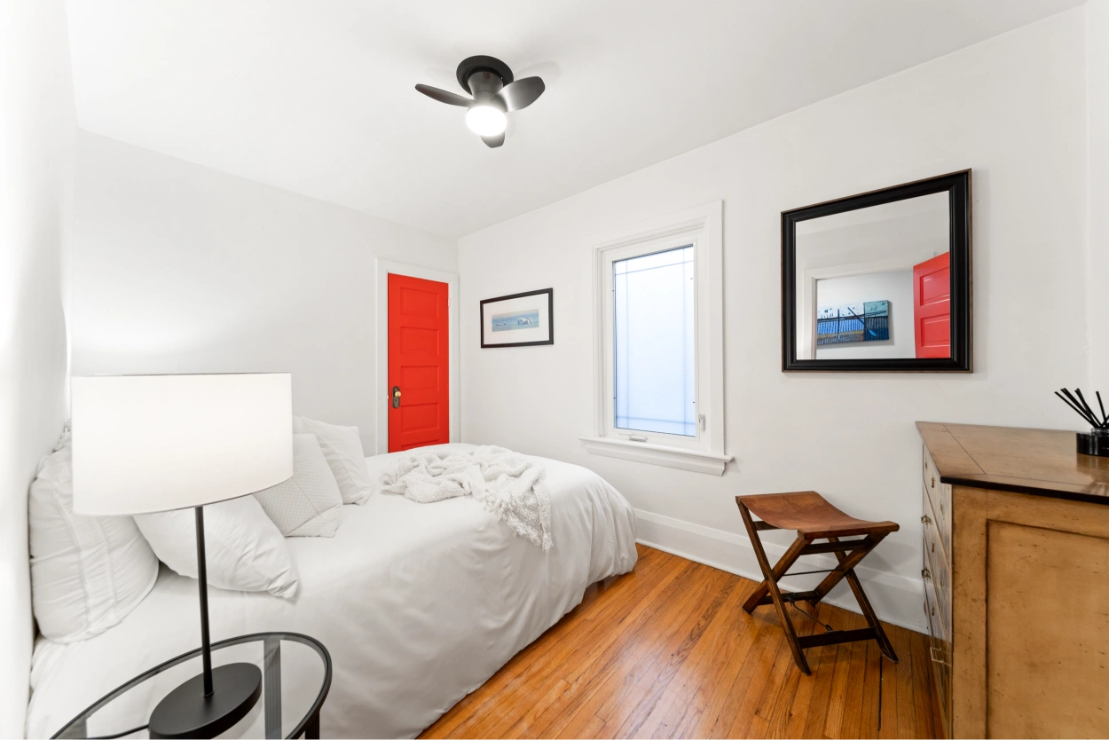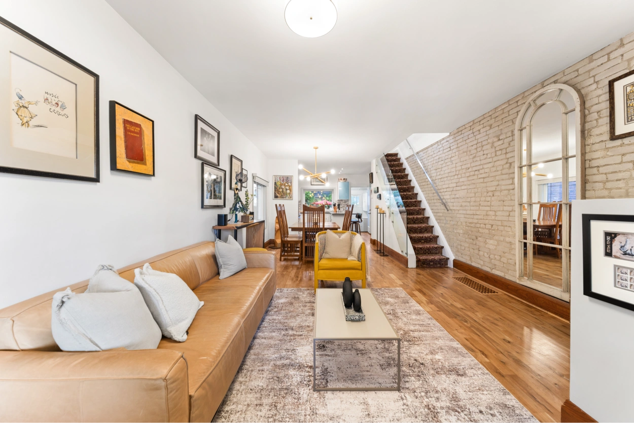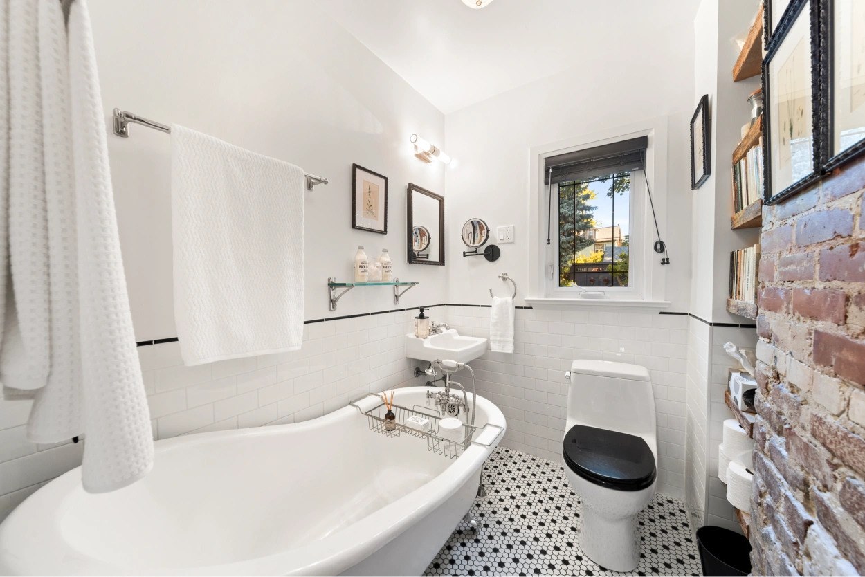 Upstairs, you’ll find 3 comfortable bedrooms, including a spacious primary with wall-to-wall closets, more exposed brick, and hardwood flooring. The updated 3-piece bathroom features a charming clawfoot tub.