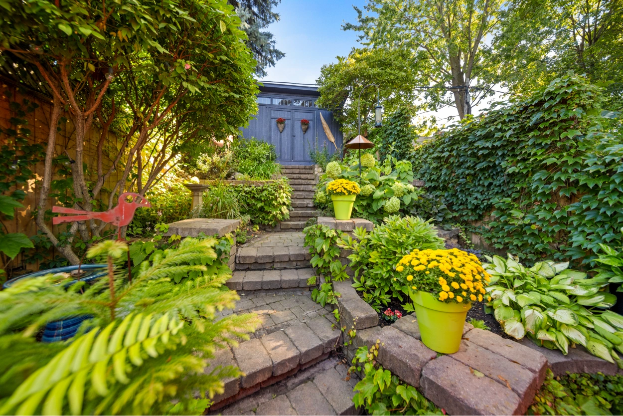 From the kitchen, walk out to your very own backyard oasis. This stunning, professionally landscaped space offers a tiered garden, a generous patio area, and a large storage.