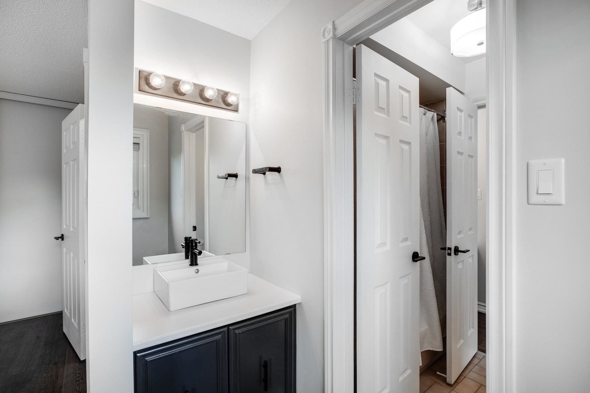 Of the remaining three bedrooms, two are connected by a shared four piece Jack & Jill bathroom, with private vanities in each bedroom. There is also a third full bathroom that has a glass enclosed tub with and both rain head and hand-held faucets.