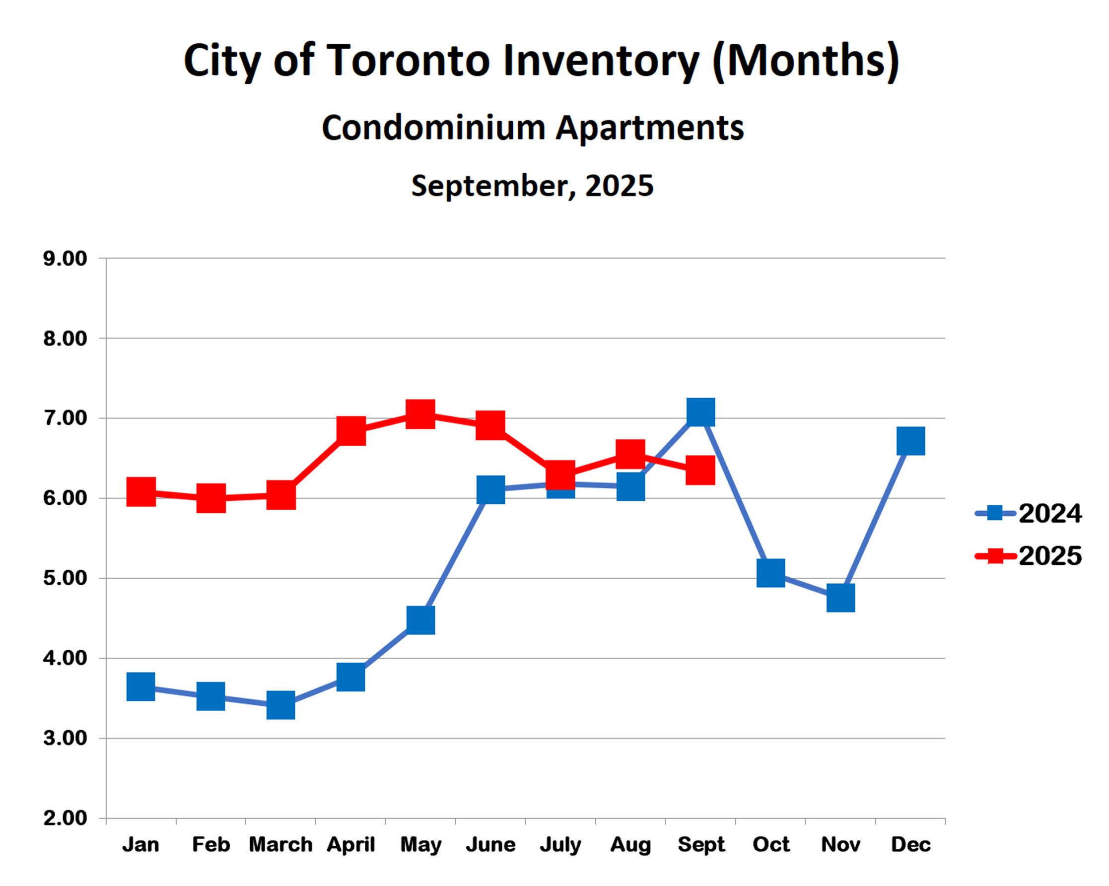 Similar to houses, condo inventory declined slightly in September. Nevertheless, condos remain deep in buyers’ market territory, where they have been all year. The main root causes of this situation — steep interest rate hikes in 2022 combined with a market heavily reliant on rentals — are well known, and it’s likely that condos will remain in a buyers’ market for some time to come.